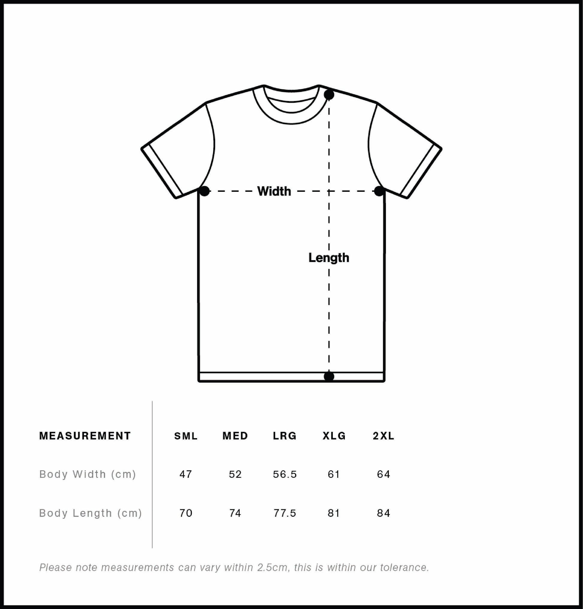 Neck ribbing, side seamed, shoulder to shoulder tape, double needle hems, preshrunk to minimise shrinkage